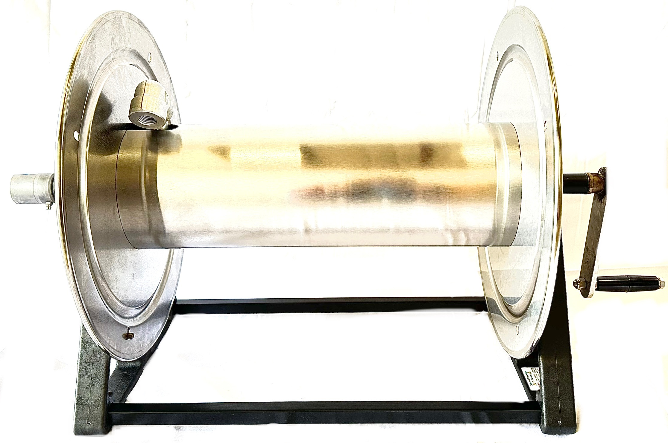 Stainless steel hose reel option for Kem-O-Kleen units. Provides organized hose storage and extended hose life.