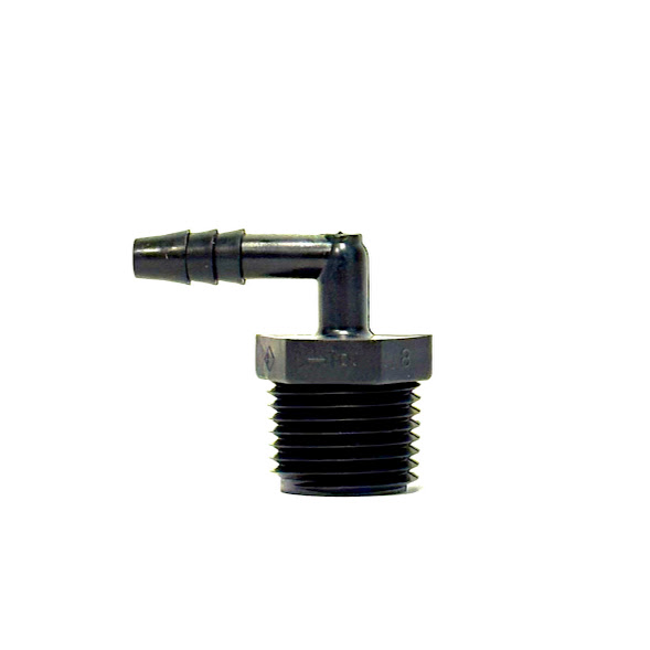 One-piece elbow fitting with 1/2″ MPT to 1/4″ barb. Provides secure directional flow connections.
