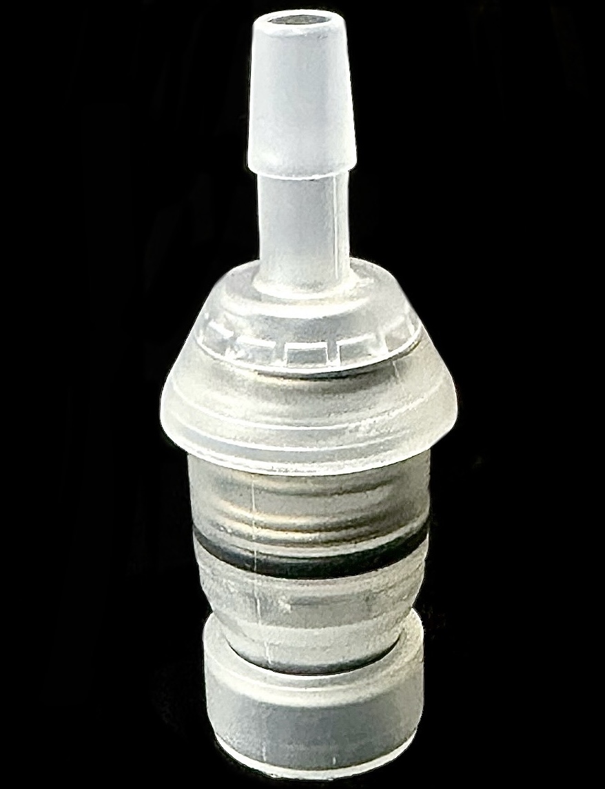 Clear male SeriesLock quick disconnect fitting used with Kem-O-Kleen acid and chemical lines. Connects securely to the female SeriesLock for fast, tool-free attachment. Constructed from clear, chemical-resistant materials