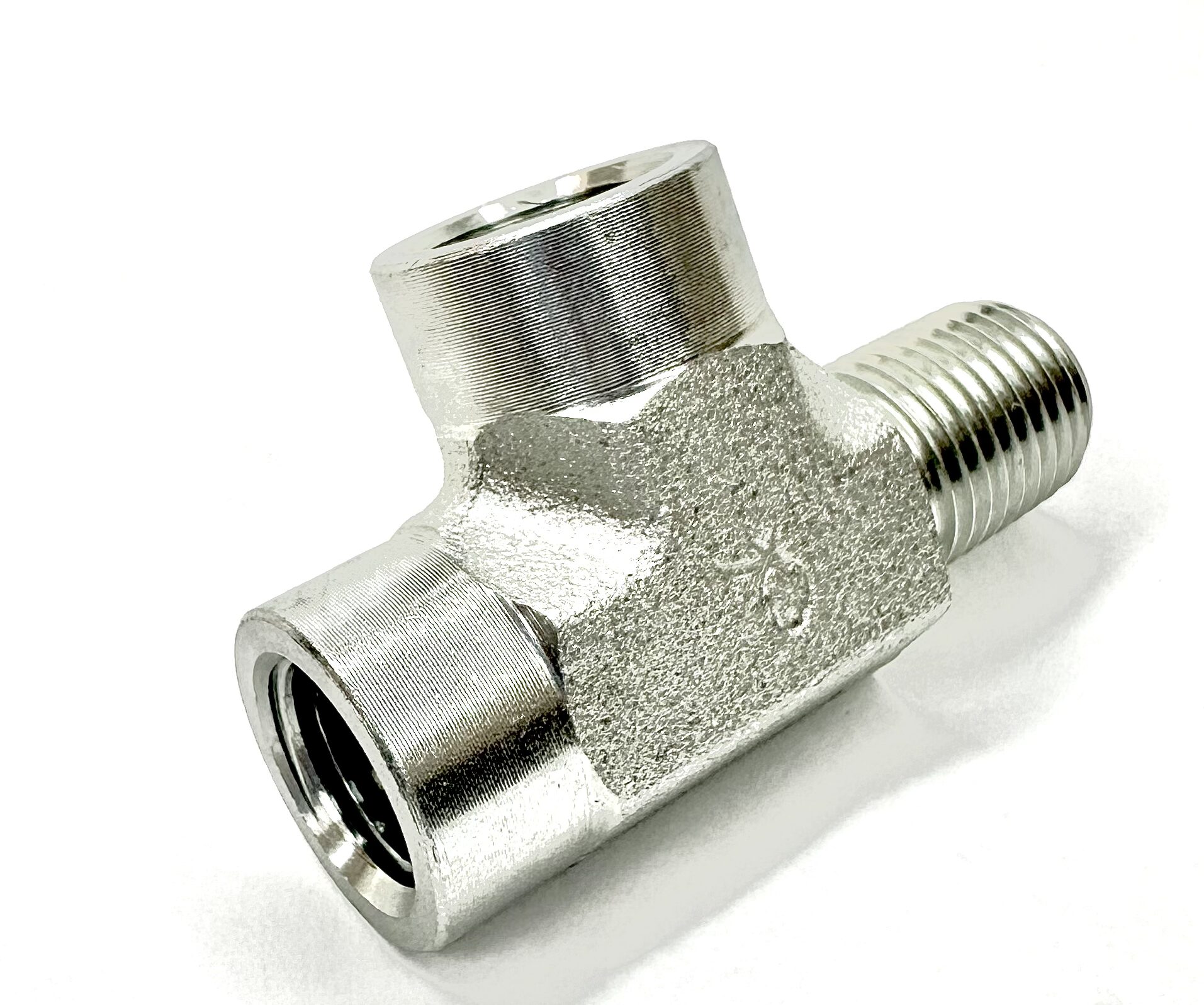 1/4″ high-pressure steel street tee used for connecting pipe to trigger gun in Kem-O-Kleen systems. Provides a secure, leak-resistant junction point for reliable system performance under pressure